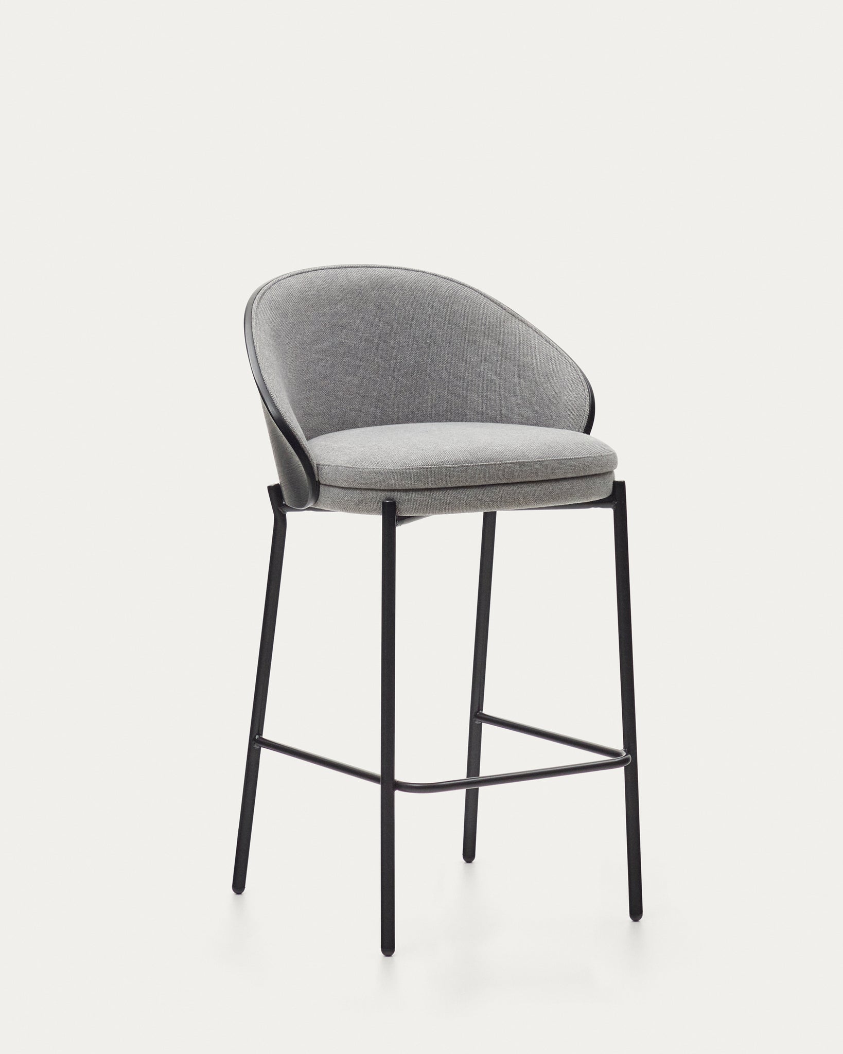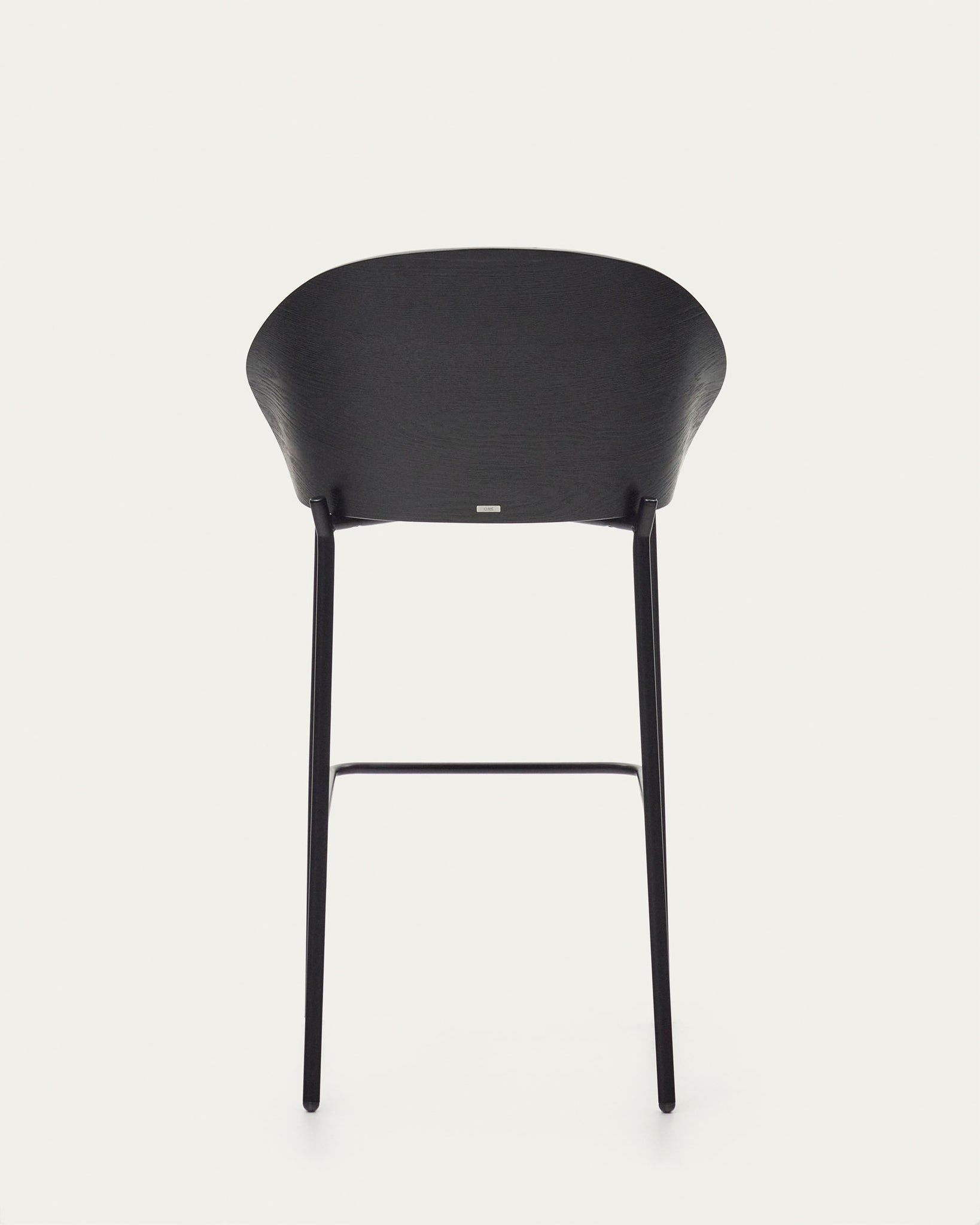 - Stool with backrest in an ash wood veneer with a black colour finish.